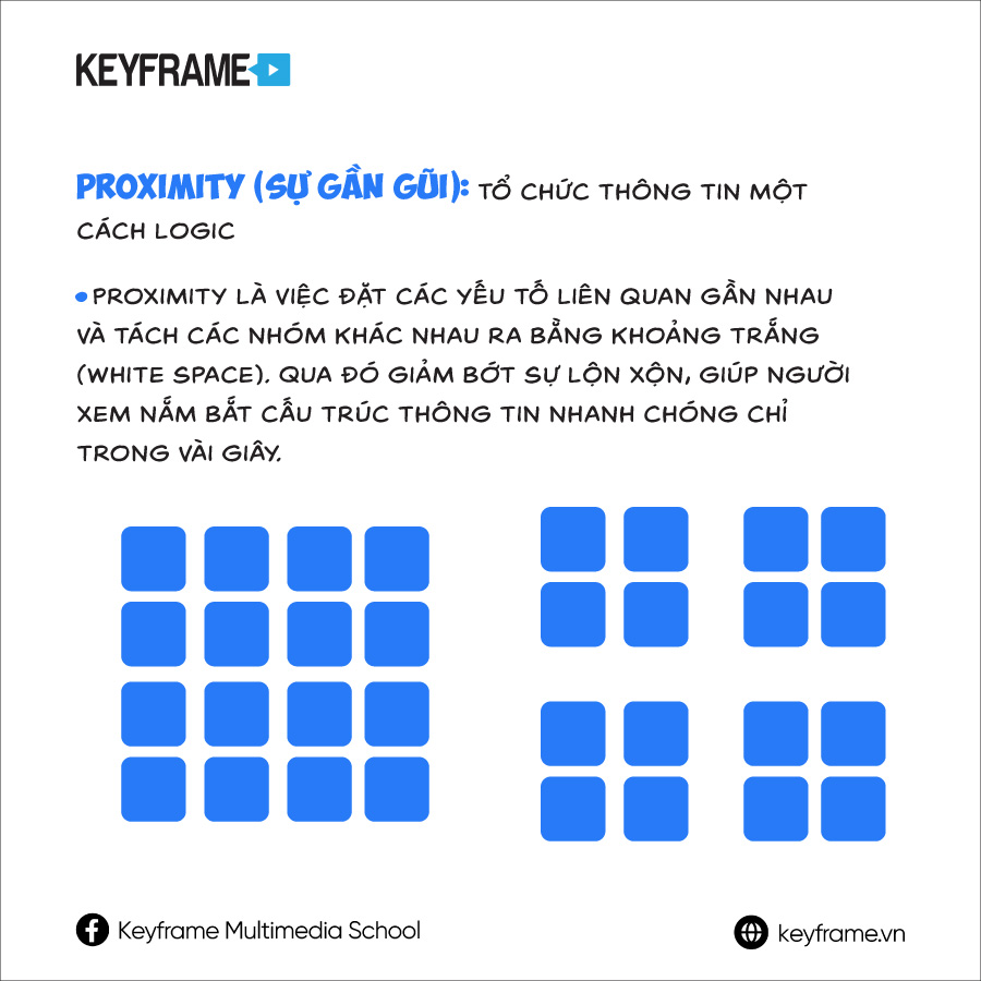 Proximity là nguyên lý sắp xếp các yếu tố liên quan gần nhau, và tách các nhóm khác nhau ra bằng khoảng trắng.